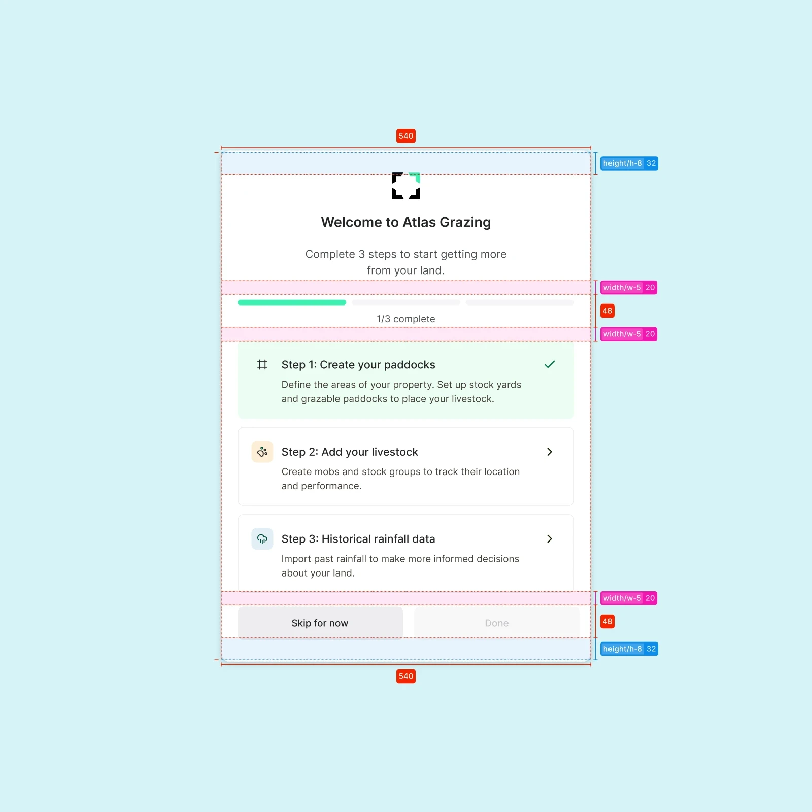 Redesigning the grazing experience meant combining mob movement, paddock planning, and task tracking into one intuitive flow. But complexity was high. We couldn’t afford to wait until polished designs to validate ideas. That’s when I introduced AI into the workflow. - ChatGPT acted as a thinking partner, mapping edge cases, refining user flows, and stress-testing concepts. - V0.dev let me generate functional UI components directly from prompts. These became live prototypes I used in stakeholder conversations to validate structure and interaction logic. Once aligned, I moved into Figma to finalise visuals, apply system standards, and prepare for development. This workflow reduced design-to-dev friction and let the team focus on solving real problems rather than pushing pixels.